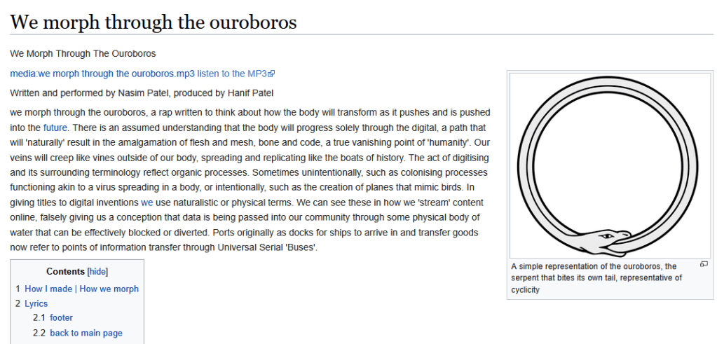 we morph though the ouroborous is a rap track created to consider how the body will transform as it both pushes and is pushed into the future.